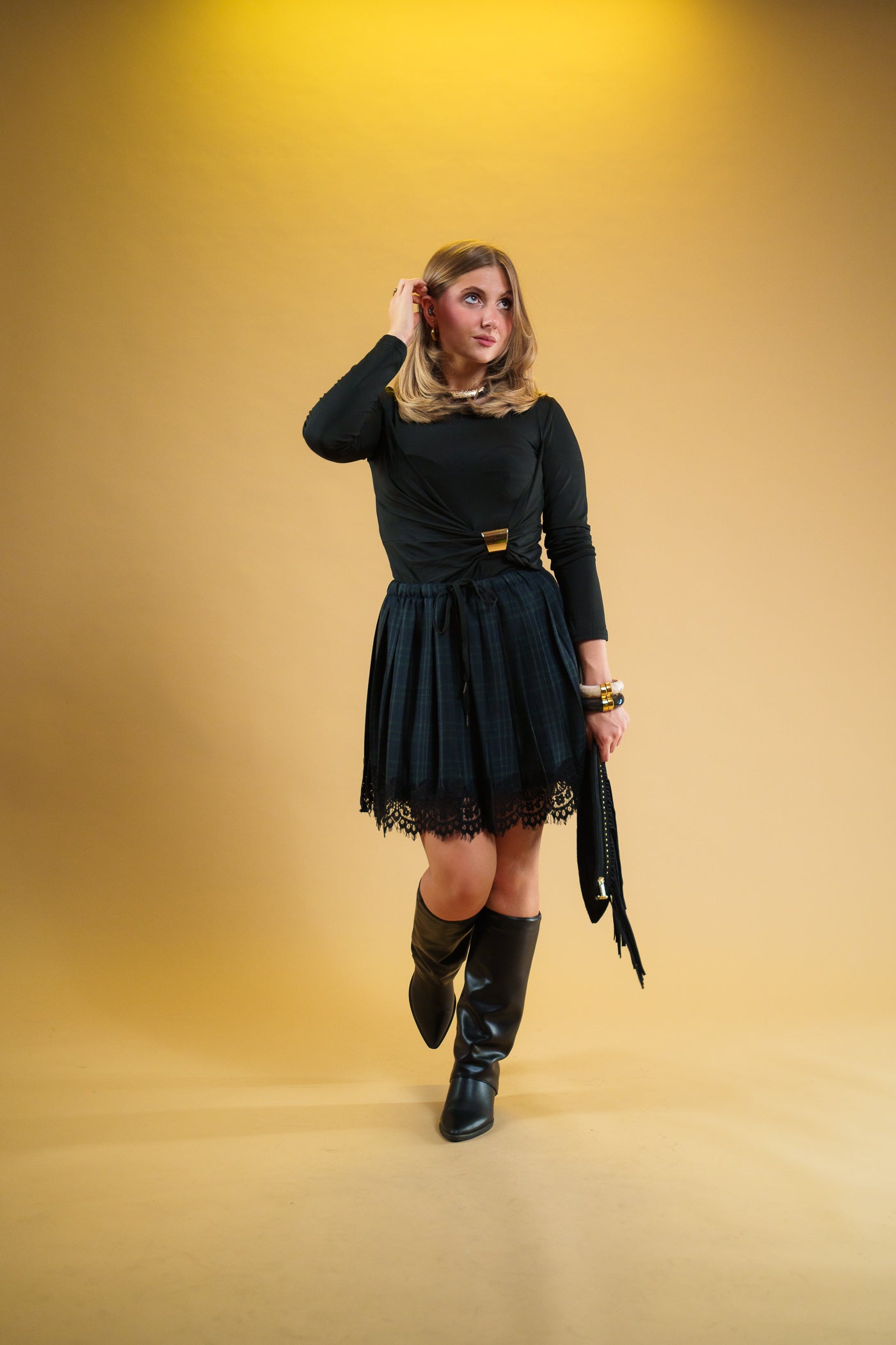 Il body Monaco è un capo unico che unisce eleganza e charme giocoso. Arricchito da un raffinato dettaglio oro, questo body valorizza la figura mentre i drappeggi aggiungono un tocco fluido e sensuale. Perfetto per chi vuole sentirsi speciale con un pizzico di audacia e stile in ogni occasione.