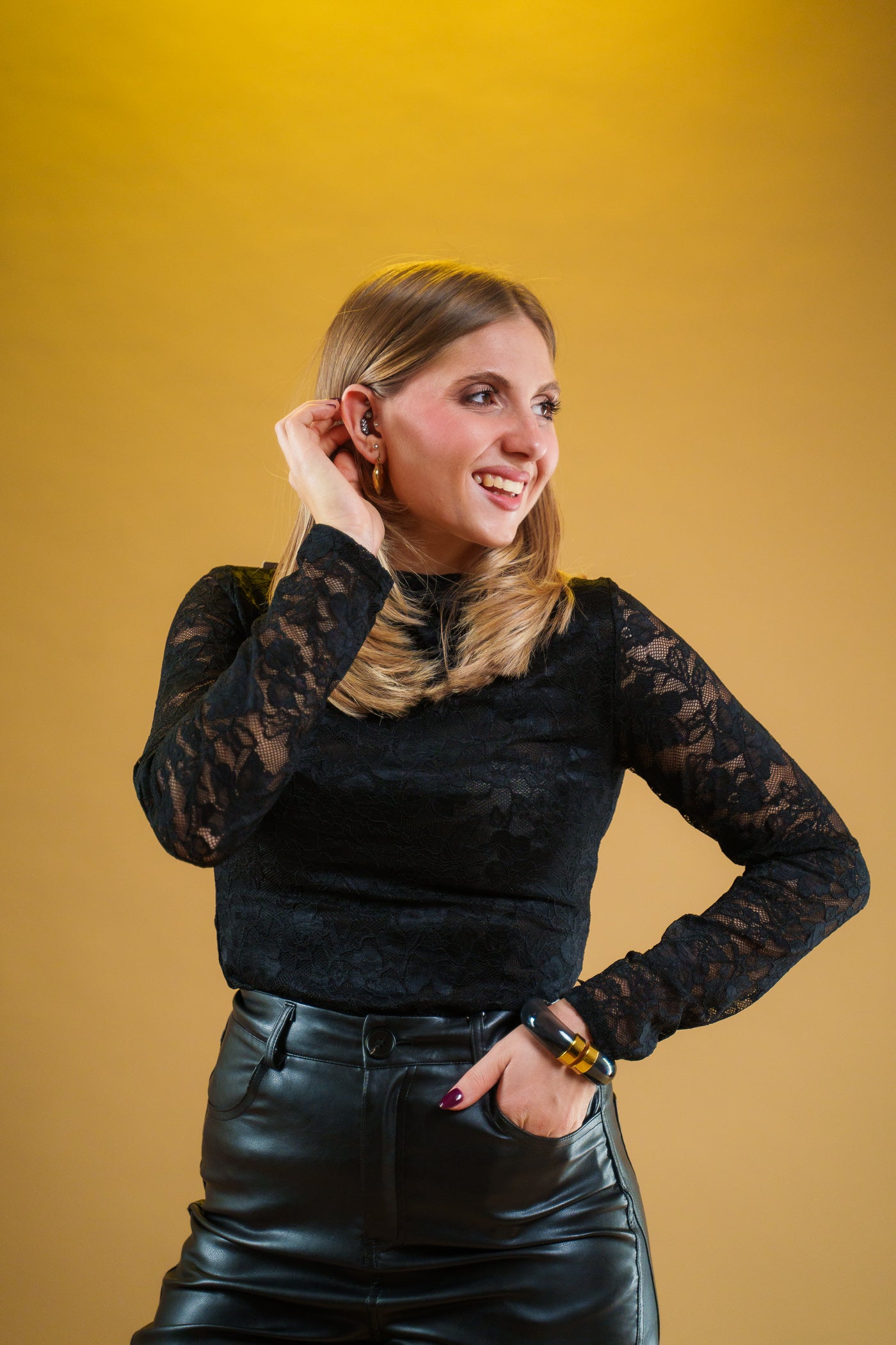 Scopri la nostra maglietta in pizzo, perfetta per aggiungere un tocco di fascino e leggerezza al tuo look. Il delicato pizzo avvolge la tua pelle con un’eleganza giocosa, ideale per chi ama vestirsi con stile senza prendersi troppo sul serio. Versatile e femminile, questa maglietta è il dettaglio perfetto per distinguerti con un sorriso.
